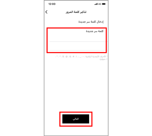 أدخل كلمة المرور الجديدة ثم قم بالضغط على "التالي".